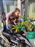 Direkt am gemeinsamen Wohnbereich gibt es die Möglichkeit auf dem Balkon die Sonne zu genießen oder sich auch um die gemeinsamen Pflanzen/Blumen zu kümmern. Im Erdgeschoss können die Bewohner*innen den Garten für Aktivitäten nutzen oder auch einfach nur entspannen.