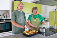Der Tagesablauf ist ähnlich wie bei einer Großfamilie oder WG: Mahlzeiten können individuell oder gemeinsam eingenommen werden. Vorbereitung und Kochen geschehen – unter Berücksichtigung individueller Vorlieben – auch gemeinsam. Gespräche, Spiele und auch Fernsehabende finden im Gemeinschaftsbereich statt und sind sehr beliebt.